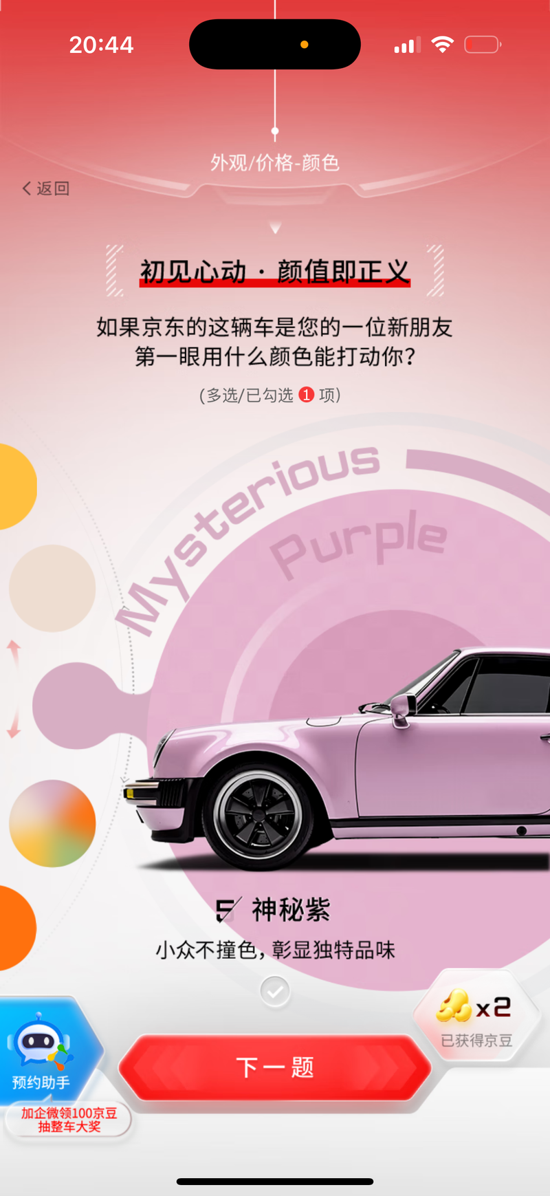 作者:admin2025年10月21日2025年10月21日对“京东“新车”配色揭晓?超过30万用户参与评选 – 新京报”作出评论 新京报贝壳财经讯(记者陈子娇)10月20日,京东汽车宣布将与宁德时代、广汽集团联合推出“国优车”。新京报贝壳财经记者了解到,京东将根据6.21亿月活跃用户的数据,通过App推出“全民定制”互动,收集配置和颜色偏好,并根据收集到的意见进行大数据分析。目前,已有超过30万用户参与评选过程。根据上面互动中透露的信息,车辆的颜色可能包括活力橙色、奢华绿色、柔和黄色、高级米色、神秘紫色等。编辑 岳彩洲 遮瑕刘宝庆
