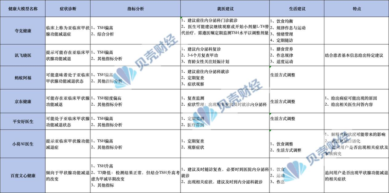 岁末年初,AI健康赛道进入爆发期。去年12月中旬,蚂蚁集团推出了AI健康应用“蚂蚁阿福”的更新版本,一度跻身苹果App Store排行榜前两名。次月,百度更新并推出了问心健康管家,OpenAI则推出了ChatGPT。在健康功能上,京东健康推出循证医疗人工智能产品“智医”,百川智能也打破长久以来的沉寂而受到关注,推出新一代开源医疗改善大规模语言模型百川-M3……各大厂商和独角兽公司在这个垂直领域吹响了“控诉”,引发了一波医疗AI热潮。在这种困惑中,用大模型“看病”靠谱吗?新京报贝壳财经记者测试了七款AI健康APP解读体检报告和解读体检报告的能力而且所有这些应用程序的解释都更加谨慎。主要差异在于治疗需求和后续问题。然而,人工智能并不是“防摔”的。一些应用程序还可以将评估甲状腺功能的核心指标 TSH(促甲状腺激素)解释为 HCG(人绒毛膜促性腺激素),并建议用户检查“是否怀孕”。面对行业的崛起,监管层纷纷发声。 2025年12月30日,北京“AI+医疗健康”新政在行业内划清界限。 1月7日,国家网信办《人工智能拟人互动服务管理暂行办法(征求意见稿)》也为AI医疗快速发展树立了“交通规则”和“安全护栏”。 AI解读体检报告非常谨慎,“幻觉”依然存在。测试解读健康检查的能力贝壳财经记者将甲状腺健康体检报告与市场上常见的七种健康模式(小河爱医生、夸克健康、平安好医生、科大讯飞小医、百度稳心健康、京东健康和蚂蚁阿福)进行了对比。七款机型均具备拍照识别解读报告、急救箱拍照、疫区拍照、AI会诊等基本功能。在这次评估中,几个大型模型表达了对症状诊断的“谨慎”态度,使用了概率、即时性、趋势等词语。例如,百度问心健康的建议往往会因为单项指标高于正常范围而认为用户患有甲状腺功能减退症。不同AI健康应用解读同一份健康检查报告。贝壳财经记者 张晓慧/这份体检报告显示,TSH(促甲状腺激素)指标高于标准值,这is a common concern for several large models.壳牌金融评估发现,七个大型建模应用程序各自分析了特殊指标和其他指标。其中,只有百度问心健康根据可能有问题的异常指标分析其他正常指标,并提示用户的T3指标可能较低,同时TSH升高,尽管另一个T3指标在正常范围内。当谈到是否接受治疗的问题时,几个重要模型的反应存在明显差异。夸克健康、科大讯飞、蚂蚁阿福明确建议用户去医院就诊。也有应用建议定期检查,如果出现相关症状及时治疗。除上述常见分析外,小河AI医生和百度问心健康在问答后询问用户是否有相关症状,京东健康提供了问题和解答相关医生的答复。这可以被认为是应用程序为了提高用户保留率而采取的行动。在七个大型模型应用中,小河博士的语言风格明显是口语化,有“我们”、“勉强达标”、“导演”等表达方式。然而,大型模型并不“安全”。此前,有用户向记者透露,一些应用将TSH(促甲状腺激素)指标解读为HCG(人绒毛膜促性腺激素)指标,从而判断是否怀孕。对此,名模回复道:“之前的回答中提到的HCG(人绒毛膜促性腺激素)的检测项目,是与TSH(促甲状腺激素)混淆造成的,对此我们深表歉意。”这次,在真实测试中,记者也发现了类似的“错觉”。该应用程序混淆了 TSH 和 HCG 之间的差异,并且此错误发生了两次。”具体来说,在第一代中,该应用程序错误地显示了 ChiTSH的原名是“人绒毛膜促性腺激素”,但后来的解释是正确的。记者再次查看时,该APP直接将TSH识别为HCG,并主动提出“优先确认怀孕状况”。对此,一位使用医用脊柱模型的技术人员告诉贝壳财经记者,幻觉是大型模型的通病,脊柱模型的幻觉很难100%消除,所以唯一的选择就是尽可能减少幻觉。当医生的处方与人工智能建议相冲突时,一些医院警告患者不要过度依赖人工智能咨询。事实上,当前监管部门也意识到人工智能在医疗领域的崛起,并发出警告。 《北京市支持医疗卫生领域人工智能应用发展行动计划(2026-2027年)》和《北京市支持人工智能产业创新发展办法》北京市卫生健康委发布的《医疗健康领域人工智能发展(2026-2027年)》强调医疗行业人工智能生态系统需要医疗企业的合作,并制定了以下政策:坚持包容审慎原则,遵循伦理标准,保护患者信息安全和生命健康安全,禁止用人工智能完全取代医疗专业人员的专业判断。目前,医生处方与人工智能建议存在差异。据媒体报道,被告带孩子去医院治疗感冒,医生开了一种“人干扰素”喷雾剂,由于受访者对该药物不熟悉,《大众健康》A询问该药物,并表示“目前该药物在儿童中的临床数据相关”。贝壳财经记者注意到,公立医院官方账号提醒患者,不要因过度依赖人工智能治疗而错过住院治疗的黄金窗口期。汕头大学医学院第一附属医院发布的案例显示,两名新家长在孩子出现反复咳嗽、发烧等症状时,到人工智能咨询平台进行咨询,确定为常见呼吸道感染,建议家庭用药。结果,男孩的症状得到了缓解。回来快一个月了,到医院的时候,发现是腺病毒感染,有类似感冒的症状。事实上,早在大规模医疗模式流行之前,ChatGPT 就已经开始流行“ChatGPT Health”了。每周都有大量的人向 ChatGPT 询问与身心健康和幸福相关的问题。住院医师孙亚轩在Deepseek出现后首先注意到这一现象。 “当时我们主任很惊讶,没想到用Deepseek搜索医学相关知识这么全面。在会议上,他特意告诉我