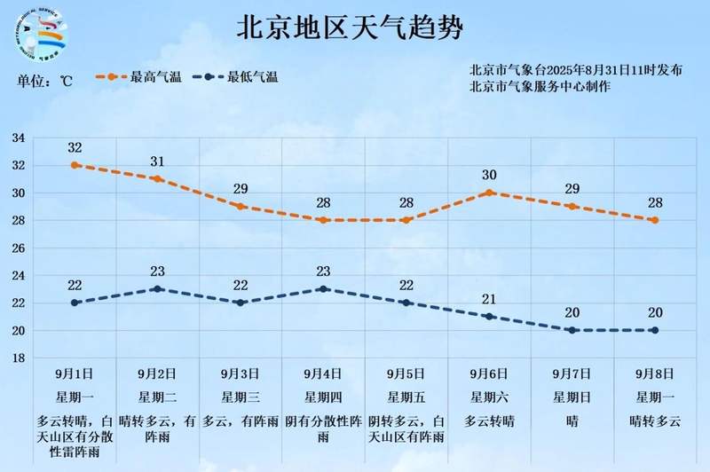 北京新闻今天(8月31日)和白天(8月31日),北京主要是阳光明媚和多云。借助太阳,温度升高到大约30°C,紫外线得到加强,下午,他们的身体感到室外感到窒息。在供热和防晒霜的情况下,请小心,并经常塞满水。应该注意的是,今天下午会有零星的阵雨和暴风雨。在外面的时候乘坐雨水团队,照顾防雨和旅行安全。此外,由于水分高,可见性发生了巨大变化,从下半夜到早晨。开车时要小心交通安全。照片/北京天气天文台预测,下周北京将主要控制空气流动,主要是在阴暗的日子里,阵雨会出现一段时间。请注意预测,这些预测正在及时访问和警告信息,并在时间上组织旅行计划,并在组织中组织旅行计划。进步。至于温度,从9月1日到8月8日至8日,白天的最高温度为28°-32°C,最低的夜间温度为20°-23°C。北京气象天文台提醒我们,夏季,秋季,早晨,早晨,早晨,早晨和下午在夏季结束时很冷。尽早出去,如果您晚了,请及时及时添加一层,以免感冒。雨经常发生,增加了地质灾难的风险。避免去山区,河流或对地质灾难危险的地区。 Liu Mengjie编辑